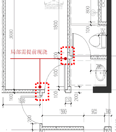 轉(zhuǎn)角(陰陽角)、門垛等位置無異形板,局部需現(xiàn)澆。